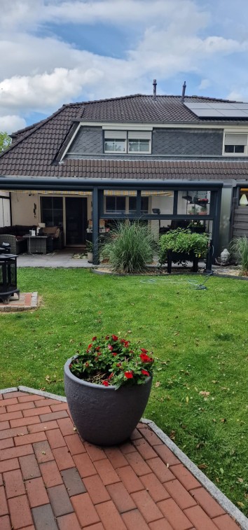 Der wunderschöne große Garten lädt zum Träumen ein und lässt keine Wünsche offen. Eine neue überdachte Terrasse mit elektrischen Rolläden wurde ebenfalls erst im Jahr 2021angebaut.