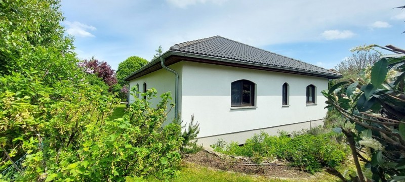 Hier wird ein gemütliches und vielfältiges Zuhause angeboten, das mit viel Liebe zum Detail entwickelt und erbaut wurde. Sie erwartet ein freistehender Winkel-Bungalow mit liebevoll angelegtem Garten und viel Platz. Das Haus wurde 2006 in Massivbauweise errichtet und seitdem von den jetzigen Eigentümern bewohnt. Dementsprechend ist das gesamte Haus sehr gepflegt, alle Arbeiten am Haus wurden immer sofort gemacht, sodass kein Reparaturstau vorliegt. Der Grundriss wurde praktisch geplant, das Haus bietet drei Schlafzimmer, ein Wohnzimmer mit Kamin und eine separate Küche mit Essbereich, eine Kühlkammer und dem Zugang zu einer geräumigen Terrasse, die auch aus dem Wohnzimmer erreichbar ist. Alle wichtigen Räume sind ggf. barrierefrei zu erreichen und die Türen sind gut mit einem Rollstuhl und/oder Kinderwagen passierbar. Das Badezimmer ist tagesbelichtet und beinhaltet sowohl Wanne als auch Dusche und in einer kleinen Badkammer lassen sich viele Handtücher und Badutensilien verstauen. Ein separates Gäste-WC mit Dusche ist im ausgebauten Kellerbereich angeordnet. Im Untergeschoss verbergen sich mehrere ausbaufähige Highlights: z.B. Büroraum, Hobbyraum, Waschküche, Partyraum und ein weiteres Gästezimmer lassen sich dort locker planen. Für Saunaliebhaber ist ein Starkstromanschluss vorhanden. Der große Partyraum kann mit einer weiteren Küche erweitert werden. Das Haus kann in zwei vollwertige Wohnbereiche mit separaten Eingängen aufgeteilt werden. Kalt-Dach kann ausgebaut werden.