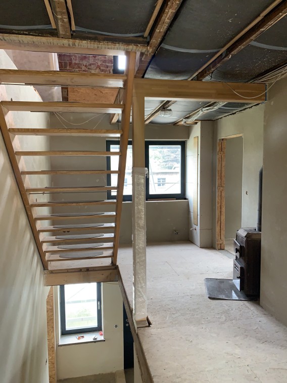 Das ca. 1960 umgebaute Bestandsobjekt wurde im Zeitraum 2013 - 2019 entkernt und grundsaniert. Die Sanierung schließt die Trockenlegung des Objekts, Erneuerung der Elektrik, Verlegung Fußbodenheizung und Neuputz an den Wänden ein.