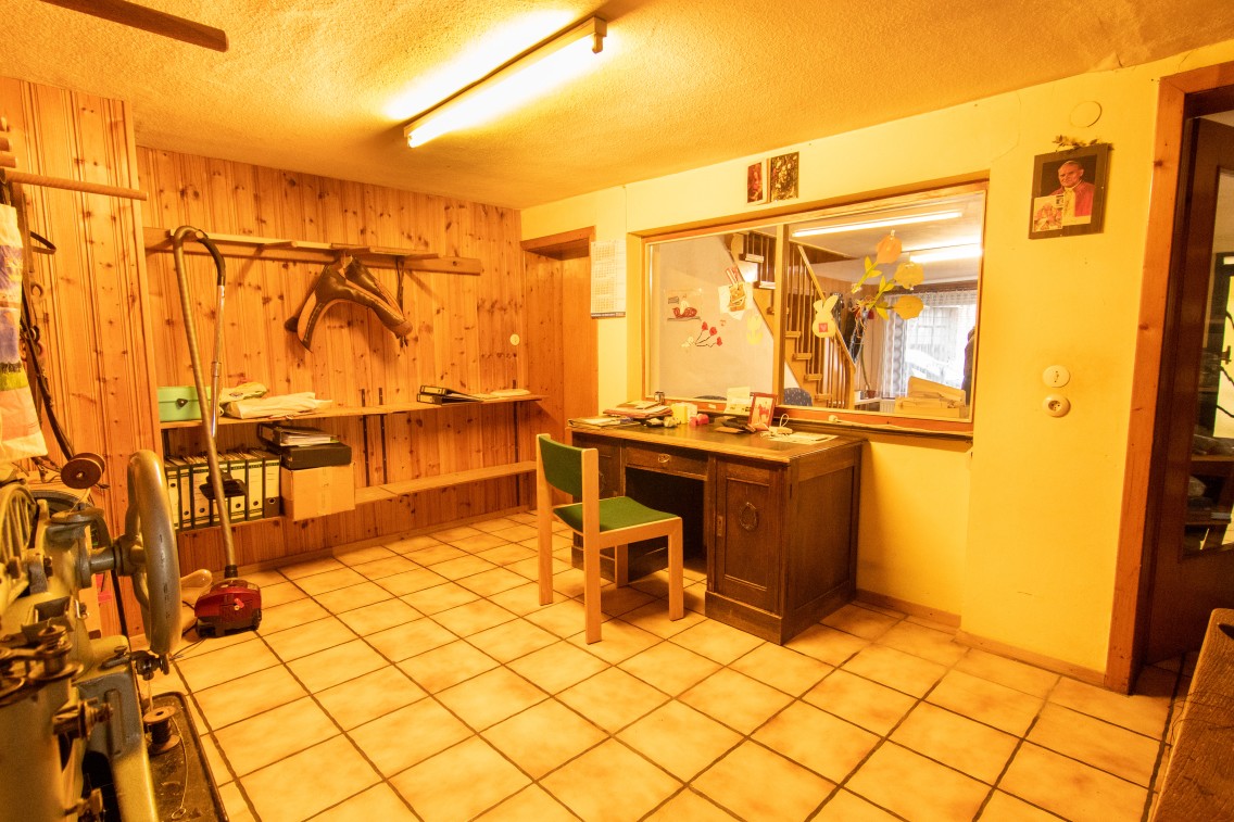 In der unteren Etage befindet sich zur Straße hin, das ehemalige Ladenlokal mit separatem Eingang von/ zur Straße hin.
