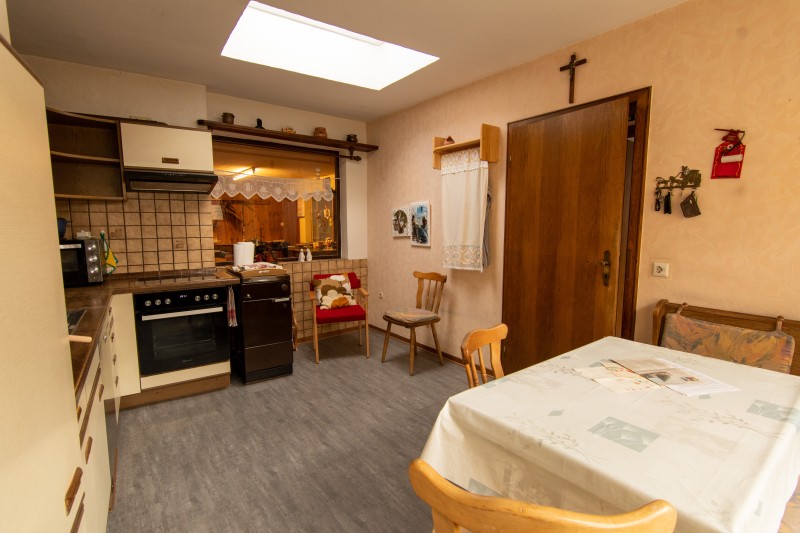 An der Hausnebenseite zur kleinen Gasse hin, befindet sich die Haupteingangstüre, mit einem großzügigen Eingangsbereich, angrenzend ein kleines Gäste-WC, einem Büro, die Küche (Übernahme möglich), ein kleiner ehemaliger Werkstattraum. Beide letzteren Räumlichkeiten bieten den Blick zur Terrasse + Garten.