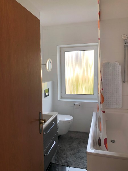 Bad 1. OG : Badewanne, Handwaschbecken, wandhängendes WC mit Up Spülkasten