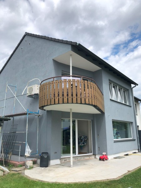 nach Süden ausgerichteter teilüberdachter Balkon, Fliesenbelag,