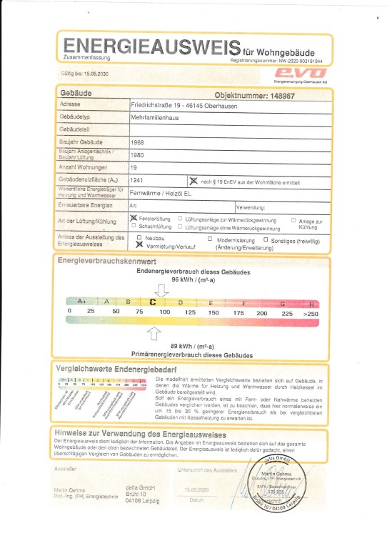 | Endenergiebedarf: | 96,00 kWh/(m²*a) |