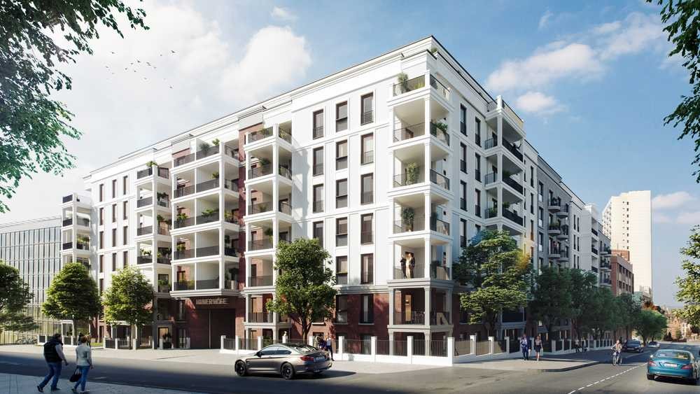 Das moderne Mehrfamilienhaus gewinnt durch die klare Gliederung der Fassade. Die-se ist eine hochwertige Interpretation klassischer Frankfurter Stadtarchitektur. Die Wohnungen überzeugen durch ihre gelungene Verbindung von Licht, Exklusivität und ihrer optimaler Nutzungsmöglichkeit. Die großen Fensterflächen garantieren viel Licht in allen Räumen. Farben, Formen und Materialien sind aufeinander abgestimmt.