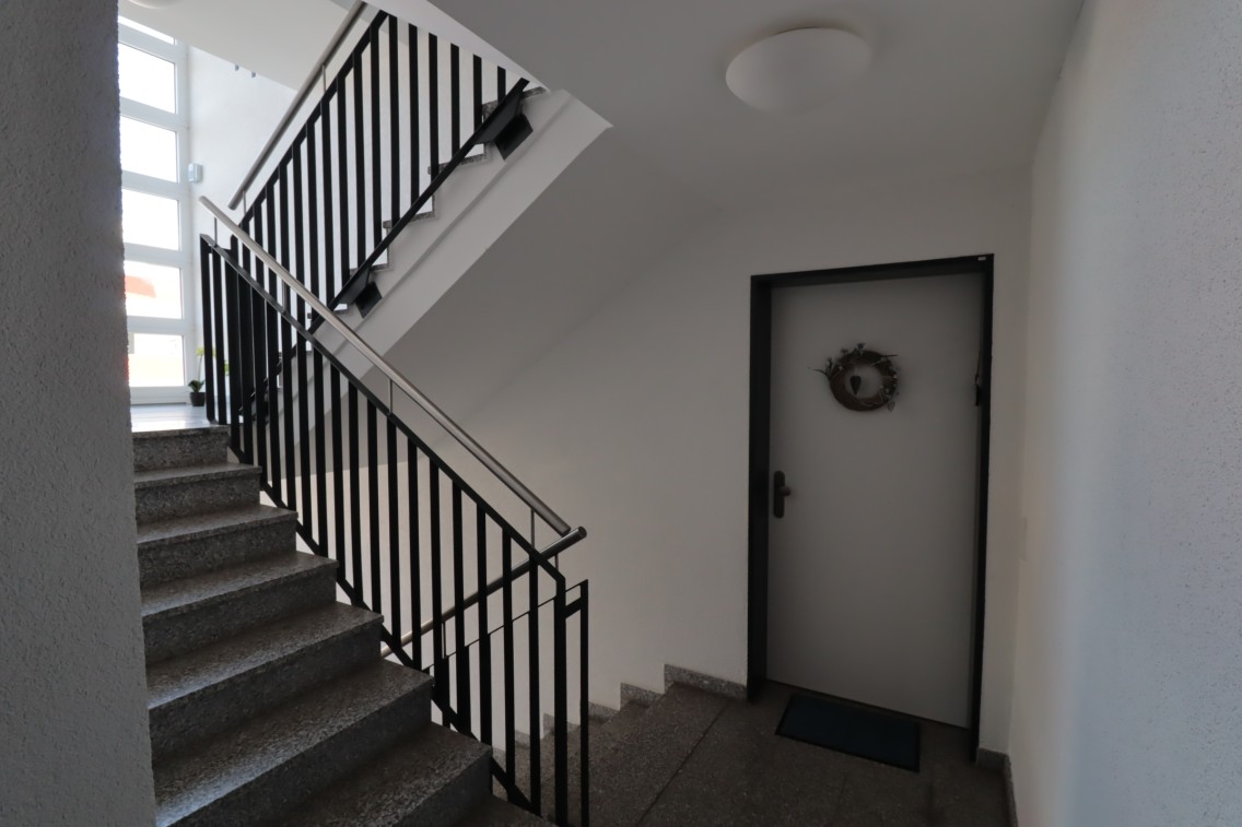 Zum Verkauf steht eine geräumige 4-Zimmer-Wohnung in einem komplett sanierten Wohnkomplex in der Carl-Schurz-Straße 24 in Bad Kreuznach. Die Wohnung hat eine Größe von 104 m² und befindet sich in einem ehemaligen Kasernengelände, das zwischen 2011 und 2013 komplett kernsaniert wurde. Der Komplex besteht aus drei Häusern mit insgesamt 35 Wohnungen, 29 PKW Stellplätzen und 35 Carports. Die Häuser sind als KfW Effizienzhaus 55 konzipiert und erfüllen damit höchste energetische Anforderungen.