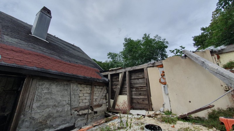 Das Haus fiel 2014 einen Brand zum Opfer und wurde anschließend nur provisorisch gesichert. 2019 wurde mit einem Wiederaufbau begonnen, der Dachstuhl neu stabilisiert und die Rückseite dicht gedeckt. Die Vorderseite war immer trocken, wird aber in den nächsten Monaten neu gedeckt werden müssen. Die Substanz ist an vielen Stellen in gutem Zustand, an vielen aber auch so stark beschädigt, dass viel ausgetauscht werden muss. Die restlichen Möbel, die auf den Bildern zu sehen sind, werden auf Wunsch noch vor dem Kauf entfernt. Sollte sich für einen Abriss entschieden werden, wäre es dort ein Grundstück in guter Lage (ruhigeres Wohngebiet, geringe Entfernung zum Zentrum, Kanalanschluss etc. komplett vorhanden). Ein kleiner Garten hinter dem Haus gehört zum Grundstück. Eine Garage befindet sich direkt am Haus, auf die Stellplätze davor passen 1-2 weitere Autos. Bei weiteren Fragen stehe ich gerne zur Verfügung.