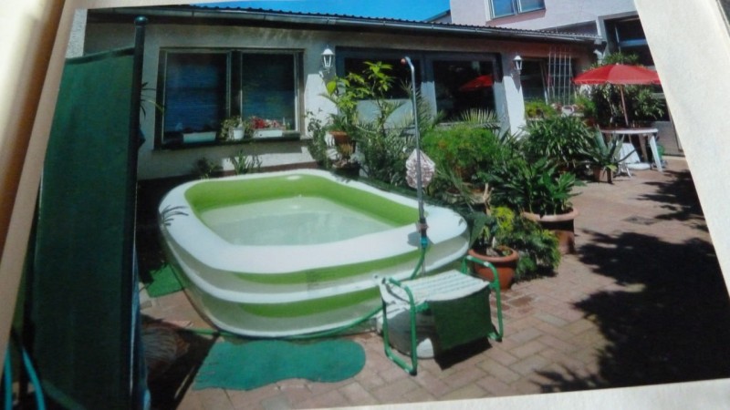 Der Hof wurde nach Einbringen einer Wasserzisterne 2004 gepflastert. Die Zisterne kann für WC- Spülung und Waschmaschine genutzt werden. Wasserstand ist hier autark ablesbar.