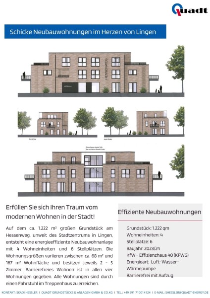 In einer beliebten Lage von Lingen (EMS) entstehen ab sofort schicke und hochwertige Neubauwohnungen in einer schönen Anlage mit insgesamt 5 Parteien. Inmitten von Lingen (EMS) mit sehr guter infrastruktureller Anbindung können Sie sich hier Ihren Wohntraum verwirklichen.