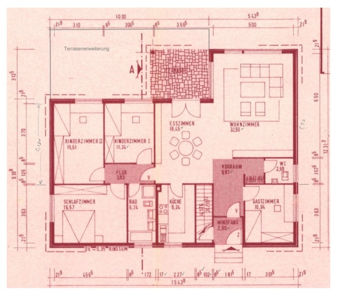 Durch die gut durchdachte Grundrissplanung ist der „private Bereich“ mit zwei Kinderzimmern, Elternschlafzimmer und das Badezimmer von dem Wohn- und Essbereich separiert