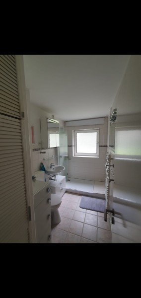Die Wohnung wurde vollständig renoviert. Das geschmackvoll, modern geflieste Badezimmer besitzt eine sehr große Dusche mit flachem Einstieg, einen Handtuchheizkörper sowie einen praktischen Einbauschrank für Putzutensilien. Alle Wohnräume sind einheitlich mit Laminat ausgestattet. Die Küche verfügt über ausreichend Arbeitsfläche und Stauraum, darüber hinaus über eine Geschirrspül – und Waschmaschine (kann auch wahlweise im Keller angeschlossen werden), sowie über einen Backofen und Gasherd.