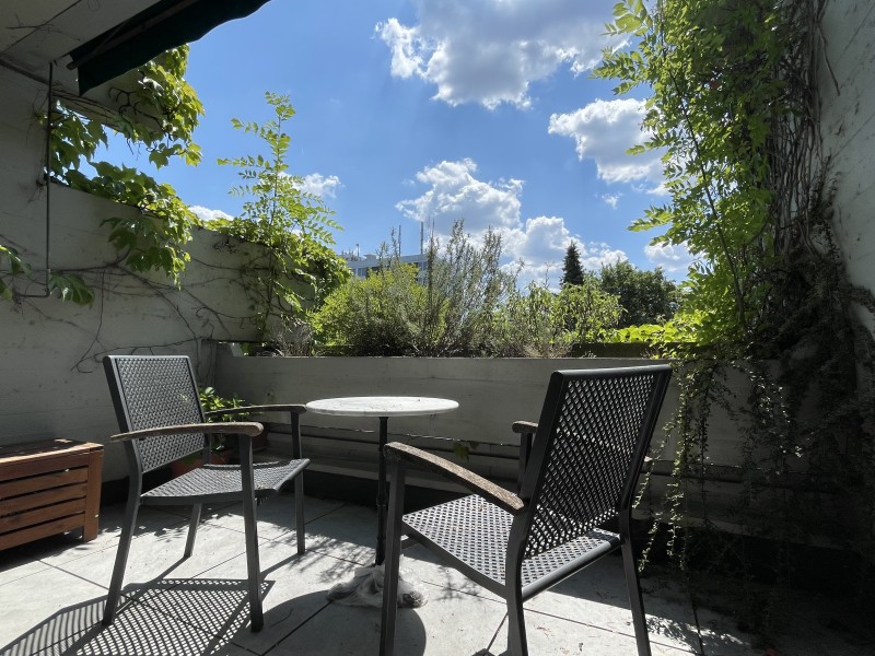 Die ruhige und helle Wohnung ist kernsaniert mit 2 modernen Bädern, Wanne und Regendusche, Waschmaschine, 2 Toiletten, 2 Südterrassen, offene EBK, 2 Schlafzimmer (groß und klein)