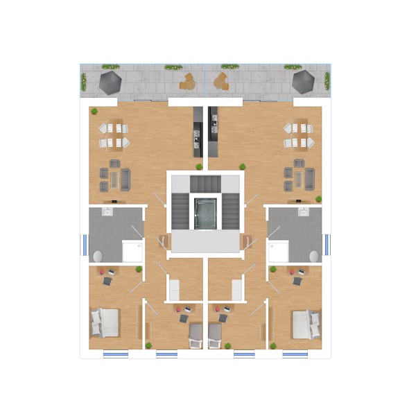 Die Wohnungen im 1. Obergeschoss und Penthouse erreichen