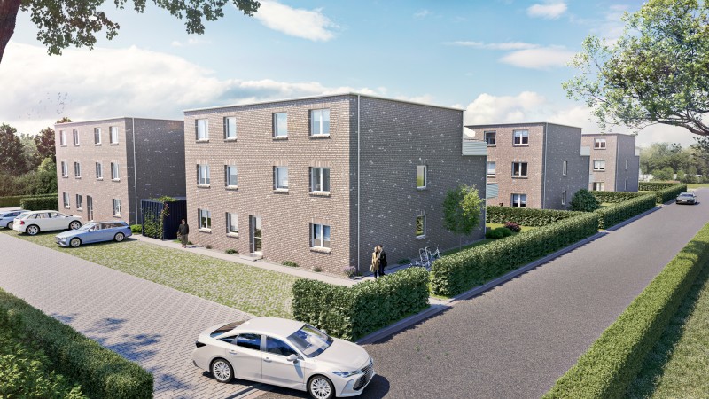Insgesamt stehen 36 Wohneinheiten aufgeteilt in 6 Häuser mit zwei bis drei Zimmern zum