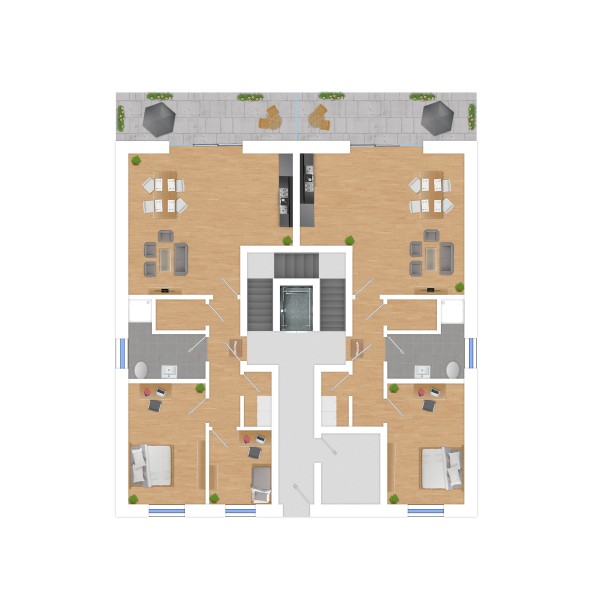 Die Wohnungen im 1. Obergeschoss und Penthouse erreichen