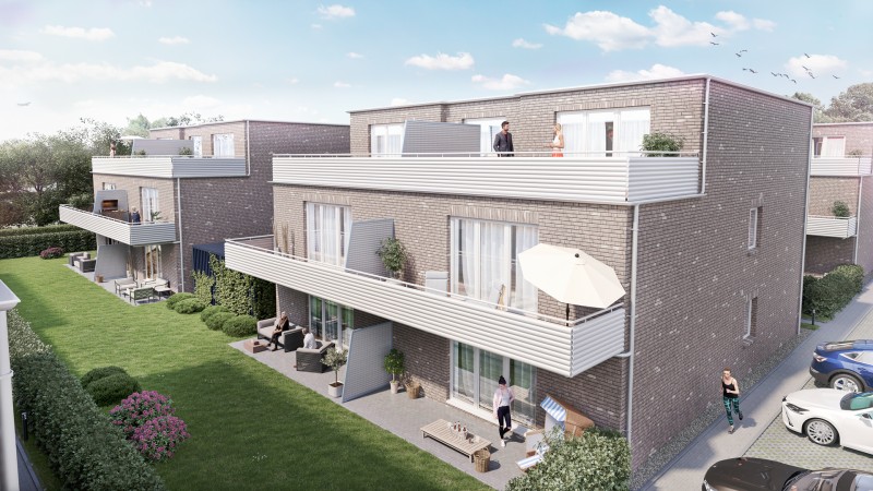Insgesamt stehen 36 Wohneinheiten aufgeteilt in 6 Häuser mit zwei bis drei Zimmern zum