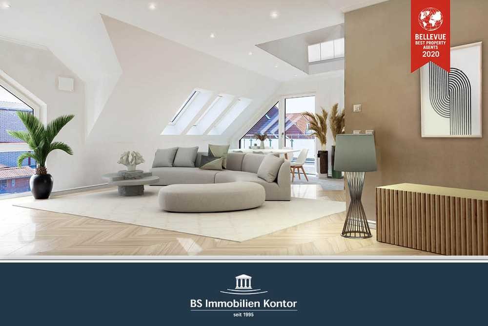 Diese beeindruckende Neubau-Obergeschosswohnung in Norden bietet eine großzügige Wohnfläche von ca. 117 Quadratmetern, die in höchstem Maße durchdacht und ansprechend gestaltet ist. Der offene Wohn-, Ess- und Kochbereich besticht durch großzügige Dachgauben, die den Raum mit natürlichem Licht durchfluten und eine einladende Atmosphäre schaffen. Ausgestattet ist die Wohnung mit einem Eiche Parkettboden in Fischgrät. Von hier aus gelangen Sie direkt auf die Süd-West Dachterrasse, auf der Sie entspannte Stunden im Freien genießen können. Die Wohnung verfügt über zwei geräumige Schlafzimmer, die jeweils mit bodentiefen Fenstern ausgestattet sind, die nicht nur viel Licht hereinlassen, sondern auch einen wunderbaren Ausblick bieten. Die beiden Badezimmer sind modern und funktional gestaltet. Beide sind mit Duschen ausgestattet, während das Masterbad zusätzlich eine luxuriöse Badewanne bereithält – ideal für erholsame Bäder. Angrenzend zur Küche befindet sich ein praktischer Hauswirtschaftsraum mit Waschmaschinenanschluss, der den Alltag erleichtert. Ein zusätzlicher Zugang zum Spitzboden bietet wertvollen Stauraum. Die Wohnung verfügt über zwei eigene PKW-Stellplätze für bequemes Parken. Darüber hinaus sind bereits Vorbereitungen für Wallboxen vorhanden, um Elektrofahrzeuge zu unterstützen. Im Fahrradschuppen stehen Steckdosen für E-Bikes zur Verfügung, was umweltfreundliche Mobilität fördert. Ein Hebelift im Haus gewährleistet Barrierefreiheit und erleichtert den Zugang zur Wohnung. Die Wohnung wird schlüsselfertig übergeben, sodass Sie sofort einziehen können. Eine moderne Lüftungsanlage sorgt für stets frische und gesunde Raumluft. Die Beheizung erfolgt über Fernwärme und Fußbodenheizung, was für eine effiziente und angenehme Wärmeversorgung sorgt. Diese Neubau-Obergeschosswohnung in Norden bietet höchsten Komfort, erstklassige Ausstattung und eine attraktive Lage. Hier finden Sie ein luxuriöses Zuhause, das bereit ist, Ihre Wohnträume zu erfüllen.