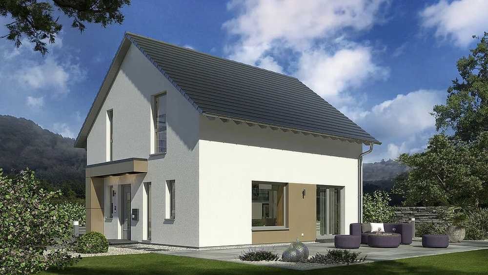 Zeitlose Eleganz außen, Weite und ein besonderes Raumgefühl innen. Unter dem Satteldach warten hier rund 135 m² auf zwei Ebenen darauf, bezogen und mit Leben gefüllt zu werden. Im Erdgeschoss ist Offenheit Trumpf: Hier erstreckt sich der große Wohn-Ess-Koch-Bereich nahezu über die gesamte Ebene, er wird nur durch die zentral platzierte Treppe von der Diele abgetrennt. Das Ergebnis: ein lichtdurchfluteter, einladender und großzügiger Bereich zum Wohlfühlen und Treffen. Im Eingangsbereich stehen zudem ein kleines Gäste-WC sowie ein großer Hauswirtschaftsraum zur Verfügung. Über die mittig gelegene Treppe geht es ins Obergeschoss. Hier ist ausreichend Raum für Eltern und bis zu zwei Kinder. Die Eltern verfügen über ein großzügig geschnittenes Reich mit separatem Ankleideraum, zwei große Kinderzimmer lassen ebenfalls keine Wünsche offen. Abgerundet wird das Raumangebot in der oberen Etage durch ein großes Badezimmer mit Dusche, Wanne und WC.
