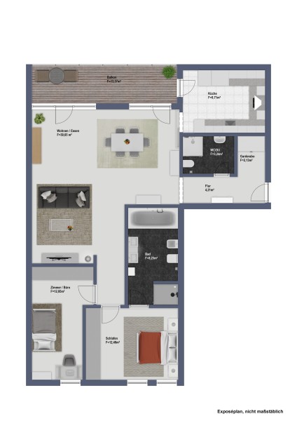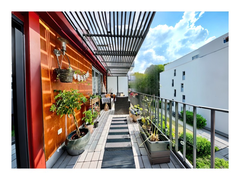 • Balkon: Der große Balkon in Südausrichtung lädt dazu ein, die Sonne zu genießen und entspannte Stunden im Freien zu verbringen.