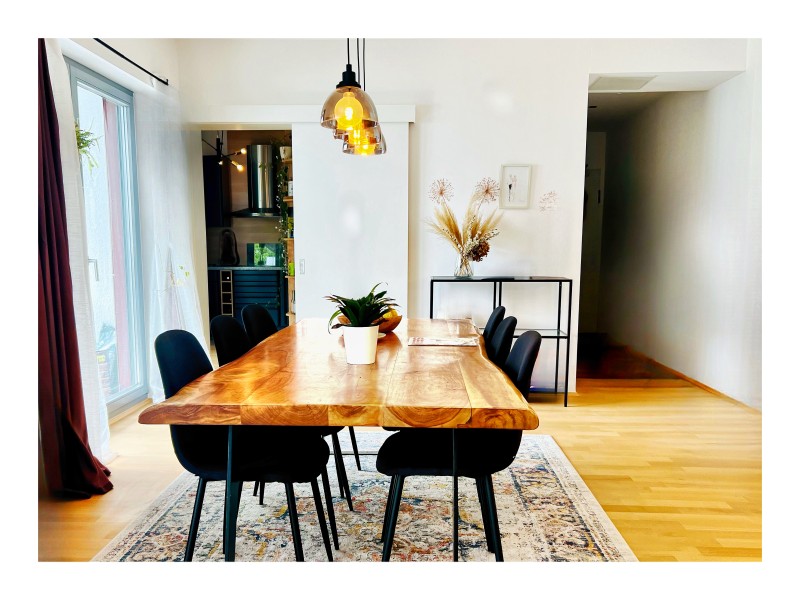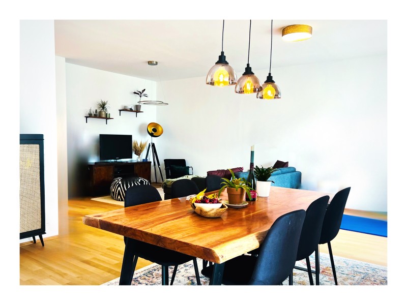 • Offener Wohn-Essbereich: Der lichtdurchflutete Wohn-Essbereich bietet ausreichend Platz für gemütliches Beisammensein und stilvolles Entertainen.