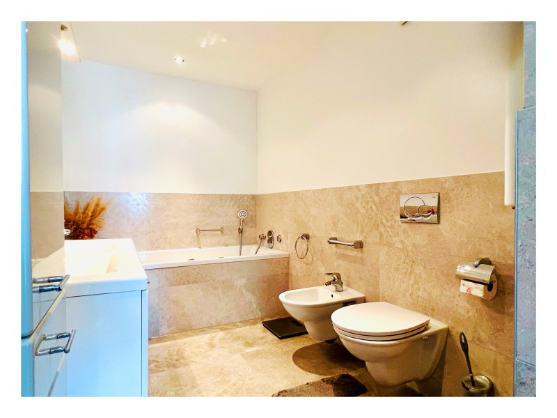 • Gästebad: ein weiteres Badezimmer mit Dusche, WC und Waschbecken, das bequem für Gäste zugänglich ist.
