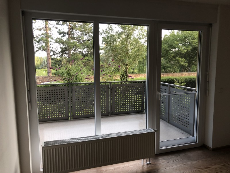 Diese Wohnung hat einen großen Südbalkon. Die Türen sind breit genug und auf Schweller wurde verzichtet.