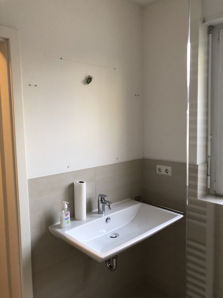 Das Bad ist vollständig gefliest und mit einer bodengleichen Dusche ausgestattet. Die Armaturen sind allesamt Markenfabrikate.