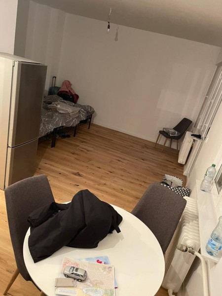 In der Wohnung befindet sich eine Einbauküche mit einem Kühlschrank, sowie ein runder Esstisch mit Stühlen und ein Bett. Zur zeit ist Wohnung noch vermietet. Das Objekt kann mit oder ohne Mieter erworben werden.