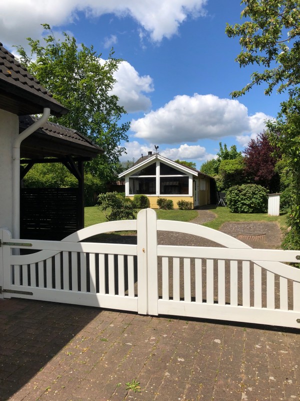 Das Fahrzeug kann sowohl unter dem Carport (22 qm) oder auf dem zweiten Stellplatz auf dem Grundstück geparkt werden. Der Terrassenplatz ist ruhig gelegen und bietet auch Wasserblick. Das große Gartenhaus (ca. 24 qm) mit einem Schlafraum und Duschbad/Toilette kann als Gästehaus genutzt werden.