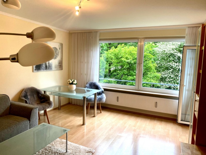 Highligt dieser Wohnung ist, aus allen Fenstern schaut man in eine schön angelegte grüne Parkanlage.