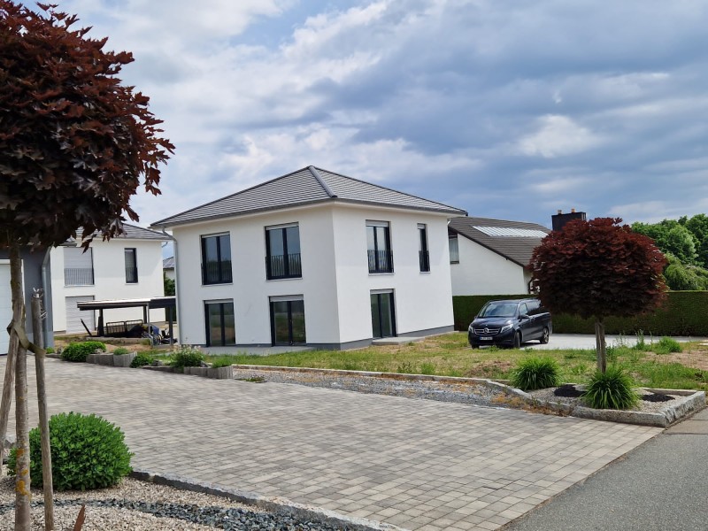 Moderne Aufteilung, mit gutem Standard, pflegeleichten Materialien und aktueller Technik machen das Leben leicht und unbeschwert. Das MODERN TOSKANA Haus mit seiner außergewöhnlichen Innenausstattung, erhält eine moderne Sanitärkeramik und Armaturen, sowie bewährte Innetüren und Vollholztreppenstufen. Außerdem ist es auf dem neuesten Stand der Technik mit einer Luft/Wasser Wärmepumpe sowie einem wirksamen WDVS ausgeführt. Die Fenster sind 3-fach verglast und mit elektrischen Rollläden versehen. Die Außenanlagen mit Gehweg, Terrasse und Einfahrt sind ge