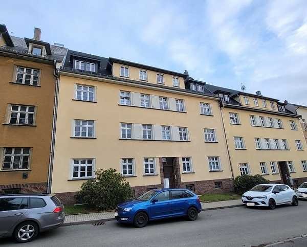 Die helle renovierte 3-Raum-Wohnung befindet sich im 1.OG eines Altbaues um 1920. Sie verfügt über Flur, ein Wohnzimmer, ein Schlaf- und ein Kinderzimmer, eine Küche mit Balkon sowie ein Tageslichtbad mit Dusche.