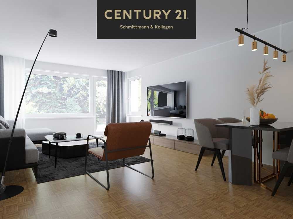 Das Wohnzimmer strahlt Wärme und Gemütlichkeit aus. Hier finden Sie ausreichend Platz für Ihre persönliche Einrichtung. Große Fenster lassen das Tageslicht herein und schaffen eine einladende Atmosphäre.