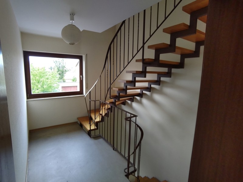 Das Treppenhaus bietet eine von den Wohnbereichen getrennte Verbindung aller drei Wohnebenen. Auf jeder Etage ist ein WC mit Duschbad mit Tageslicht.