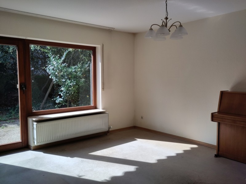 Der Wohn-Ess-Bereich in der mittleren Etage öffnet sich zur Terasse, die sich auf der ruhigen, straßenabgewandten sonnigen Süd-Seite des Hauses befindet. Dort findet sich auch der große Garten.