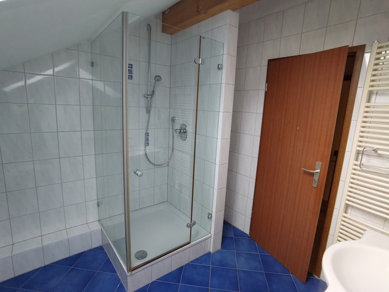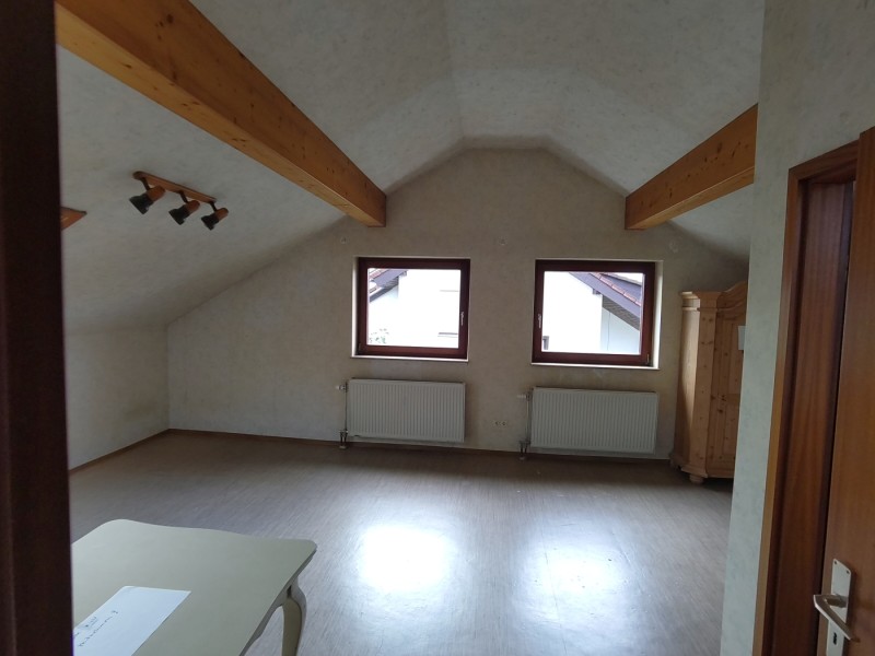 Im DG befindet sich ein großer lichtdurchfluteter Wohnraum, ein Küchenraum mit neuwertiger Einbauküche, ein Duschbad sowie zwei weitere Räume, von denen einer noch nicht ausgebaut ist (Ausbaukosten rd. 2.200 EUR). Ansonsten ist Parkettausstattung vorhanden.