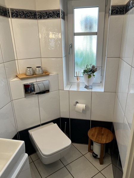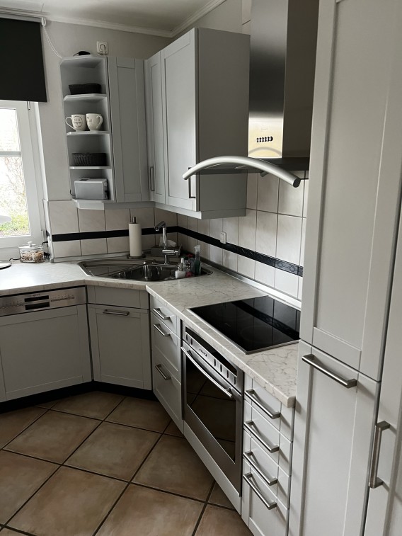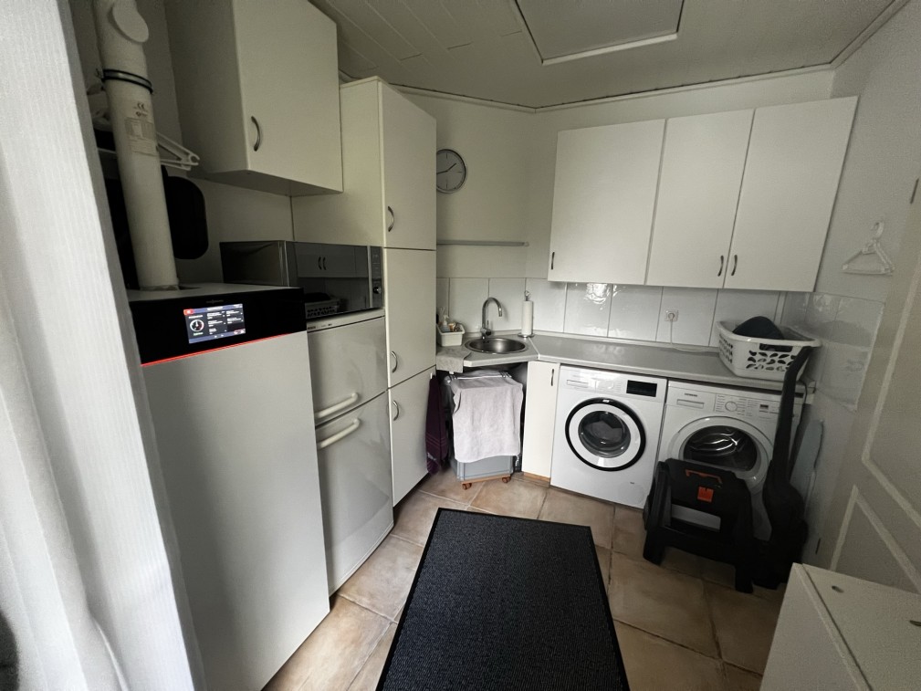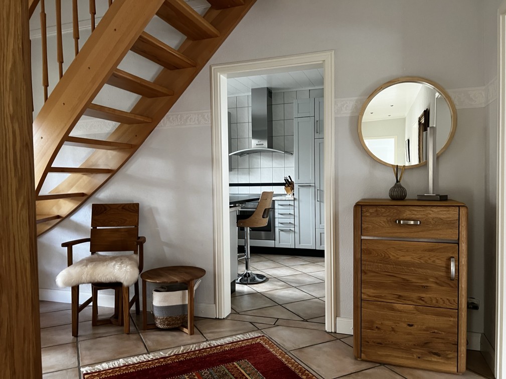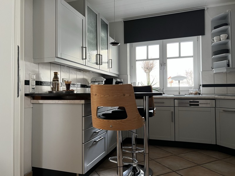 Im Erdgeschoss befindet sich der moderne Küchenbereich mit einem beträchtlichen Angebot an Stauraum für jede Art von Küchenutensilien. Angrenzend hierzu befindet sich der Hauswirtschaftsraum, in dem sich der Trockner, die Waschmaschine, die modernisierte Heizungsanlage und zusätzlicher Stauraum befindet.