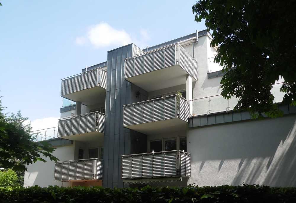 Selbstverständlich befindet sich in diesem Haus ein Fahrstuhl! Die Wohnung selbst befindet sich im 1.OG und hat ein geräumiges Wohnzimmer, Schlafzimmer, Küche, Diele, Bad mit Wanne und Dusche, Gäste-WC, ein sep. offener Essplatz, sowie ein großer West-Balkon mit Blick ins Grüne. Da die Wohnung 7 seit Erbauung nur von einer Person bewohnt wurde, ist das dritte Zimmer nicht final geschlossen worden (wie in der baugleichen, spiegelverkehrten Wohnung 8) sondern als Essplatz offen zur Diele geblieben. Wie man anhand des angehängten Grundriss erkennen kann, ist dieser Essbereich mit wenigen "Handgriffen" zu einem Arbeitszimmer o.ä. umfunktioniert, falls ein drittes, sep. Zimmer nötig ist.