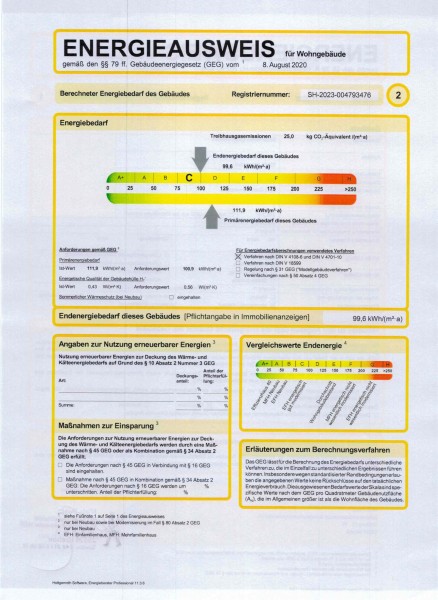 | Endenergiebedarf: | 99,60 kWh/(m²*a) |