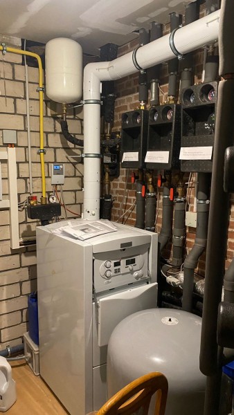 Die Heizungsanlage setzt sich aus einem Gaskessel und einer 12 qm großen Solarthermieanlage zusammen. Im Sommer deckt die Solarthermie den Wärmebedarf nahezu vollständig ab, sodass der Gaskessel während dieser Zeit kaum in Betrieb genommen wird.