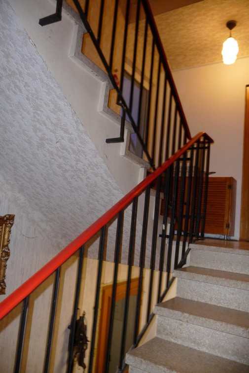 Das Haus hat drei abgeschlossene Wohnungen, die über ein freundliches helles Treppenhaus aus wertigem Terrazzostein und großen Fenster erreichbar sind.