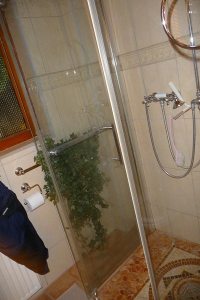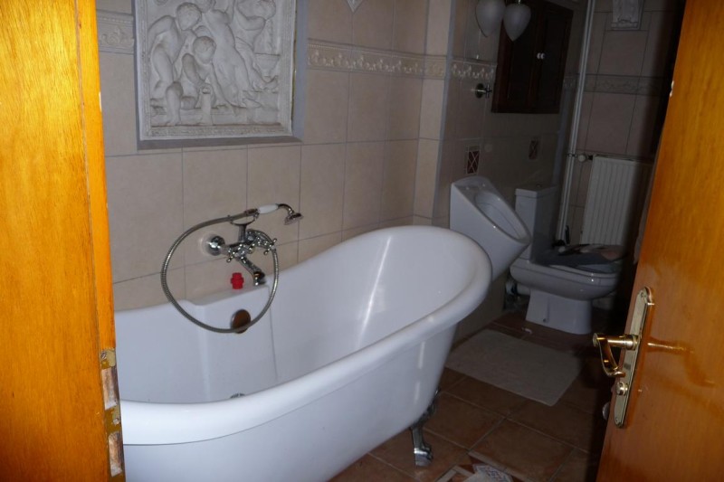 Das Bad im Erdgeschoss wurde 2012 erneuert. Es verfügt über eine ebenerdige Dusche, eine freistehende Wanne in Vintage-Optik.