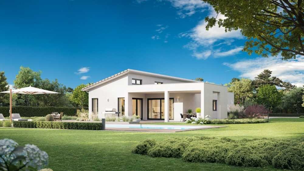 Ein schöner Fertighaus-Bungalow mit Pult- und Flachdach