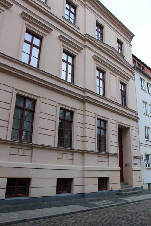 Die straßen- und hofseitigen historischen Holzfenster wurden entsprechend denkmalpflegerischer Auflagen durch optisch gleichaussehende, neue Holzfenster ersetzt.