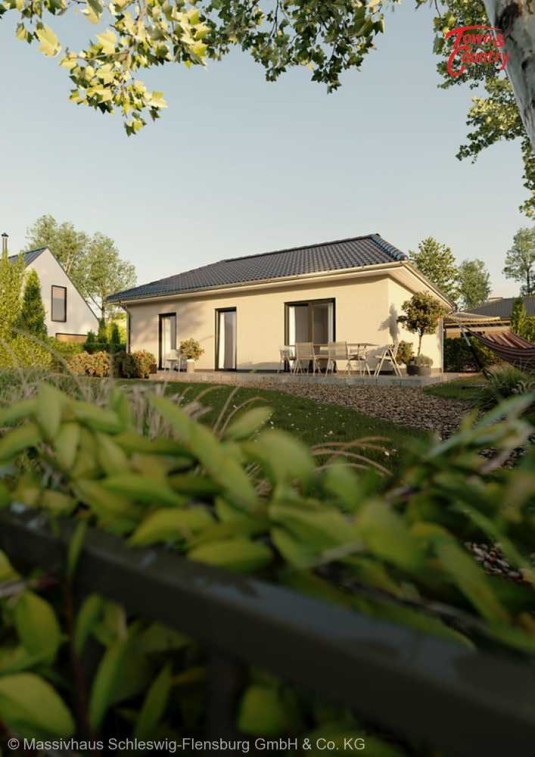 Auf rund 78 Quadratmetern finden Sie dank cleverer Planung ausreichend Platz für die ganze Familie. In den hellen, großzügig geschnittenen Zimmern wohnen Sie auf einer Ebene mit der Natur. Ob Wohnzimmer, Küche oder Schlafzimmer - überall sind Sie nur einen Schritt von Ihrem Garten entfernt.