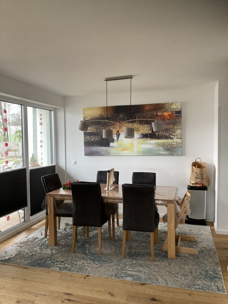 Das Haus hat neben einer modernen Raumstruktur, großen Fenstern, der Luft-Wärmepumpe, elektrischen Jalousien und Fußbodenheizung einiges zu bieten.
