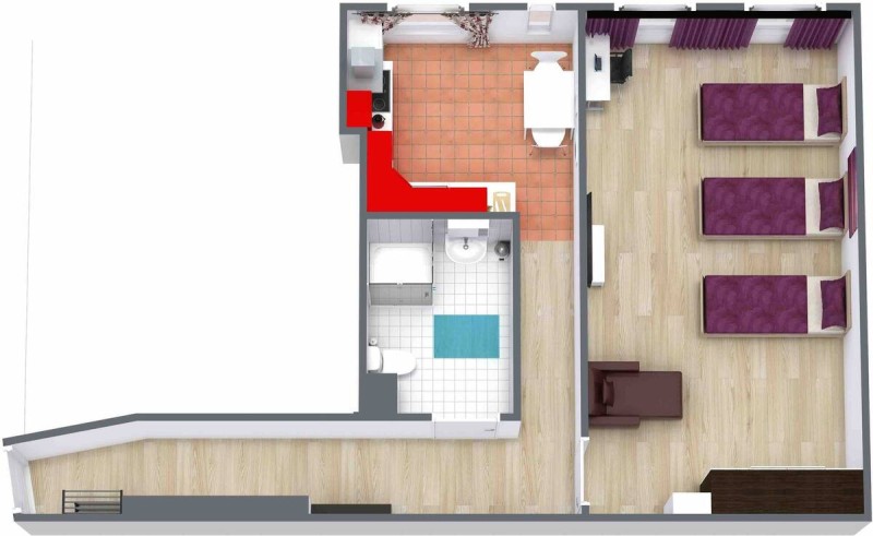 Die Wohnung liegt im 1. Obergeschoss des Hinterhauses und hat eine Größe von ca. 46,7 m2.