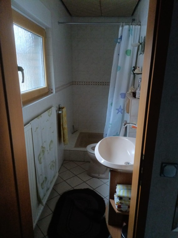 In der ersten Etage befindet sich ein großer, z.Zt. als zweites Wohnzimmer bzw. Büro genutzter Raum, ein Schlafzimmer mit Durchgangszimmer, welches als Ankleideraum genutzt wird und ein großes Badezimmer mit Badewanne.