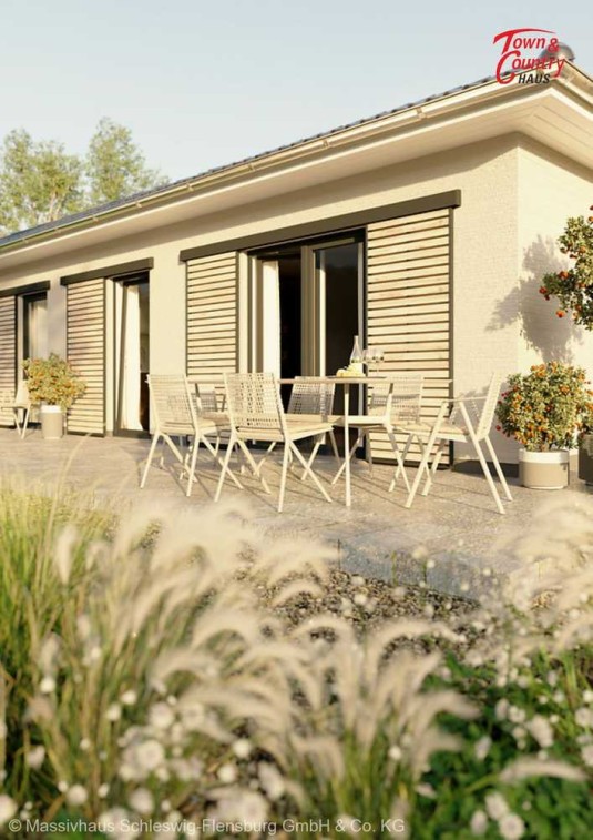 Auf rund 78 Quadratmetern finden Sie dank cleverer Planung ausreichend Platz für die ganze Familie. In den hellen, großzügig geschnittenen Zimmern wohnen Sie auf einer Ebene mit der Natur. Ob Wohnzimmer, Küche oder Schlafzimmer - überall sind Sie nur einen Schritt von Ihrem Garten entfernt.