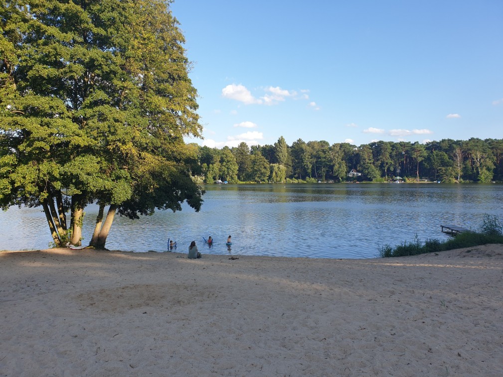 Wunderschöner und der Kommune vorbehaltener Badestrand/-Wiese (siehe Foto) mit exzellenter Wasserqualität im Lanken-See, nur ca. 5-10 Minuten Fußweg teils durch den Wald.